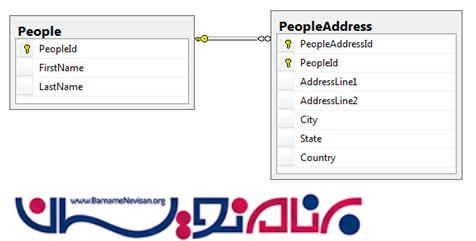 طبق کدهایی که دیدید بین دو کلاس ارتباط یک به چند وجود دارد . PeopleId در داخل کلاس People به عنوان کلید اصلی است .اما در داخل کلاس PeopleAddress به عنوان کلید خارجی خواهد بود .بنابراین در داخل کلاس PeopleAddress این فیلد را با صفت ForeignKey آورده ایم .همچنین برای اینکه EF تشخیص دهد که دو سر ارتباط کیست و همچنین چندگانگی ارتباط را بفهمد در داخل کلاس People برای Navigation property این خط را آورده ایم .