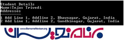 برای تست کردن این روش دو کلاس strudent و StudentAddress را به صورت زیر تعریف کرده ایم