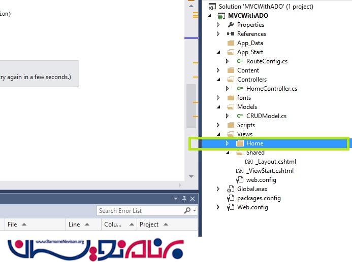 بعد از اضافه کردن کنترلر ، پوشه ای با نام Home در پوشه View ایجاد خواهد شد.