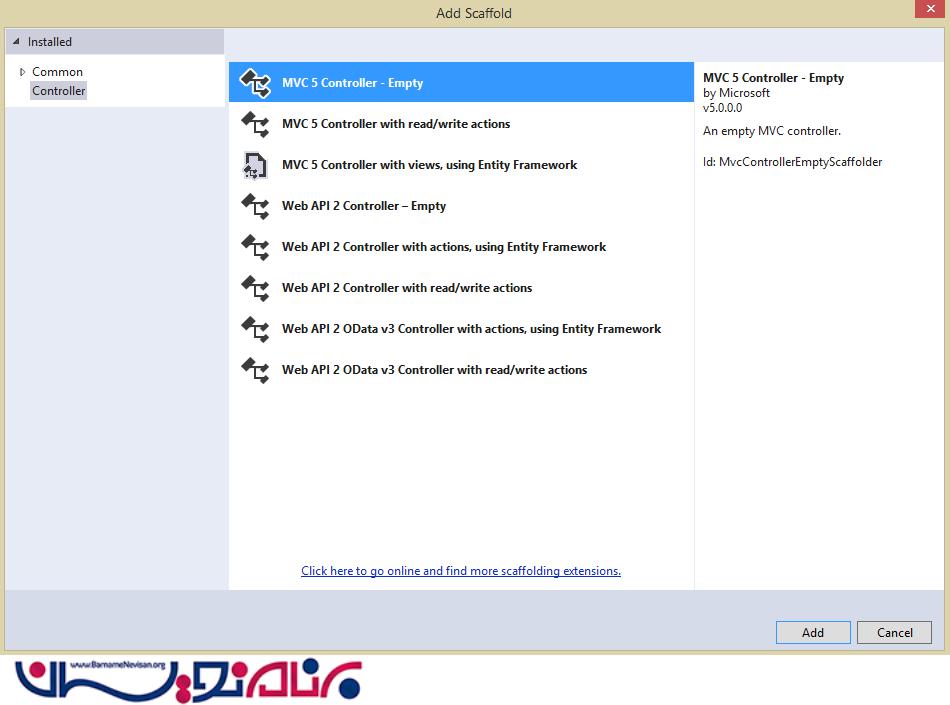 کنترلر ایجاد شد اما هنوز View ها برای نمایش اطلاعات ایجاد نشده اند . در کنترلر با راست کلیک بر روی ActionResult مربوطه View ها را به صورت Empty ایجاد کنید .