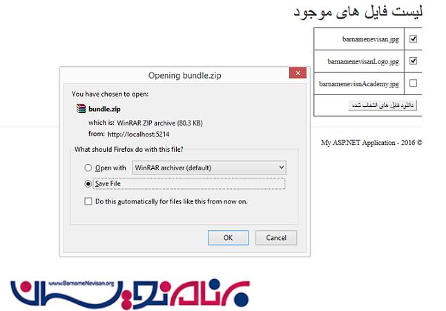 انتخاب و دانلود چند فایل به صورت Zip شده در MVC