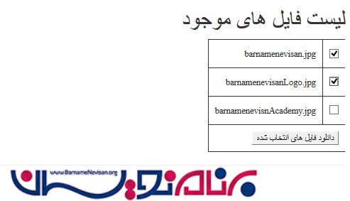 در اینجا می خواهیم صفحه ای بسازیم که شامل لیستی از فایلهای موجود بر روی سرور می باشد. هر فایل یک checkbox در کنار خود دارد که با انتخاب آن نشان میدهد آیا فایل شامل بسته دانلود می باشد یا خیر. بعد از انتخاب یک یا چند checkbox می توانید بر روی دکمه "دانلود فایل های انتخابی" کلیک کرده و آنها را دانلود کنید. با این کار یک فایل Zip ایجاد شده و فایل های انتخابی به آن اضافه می شود.