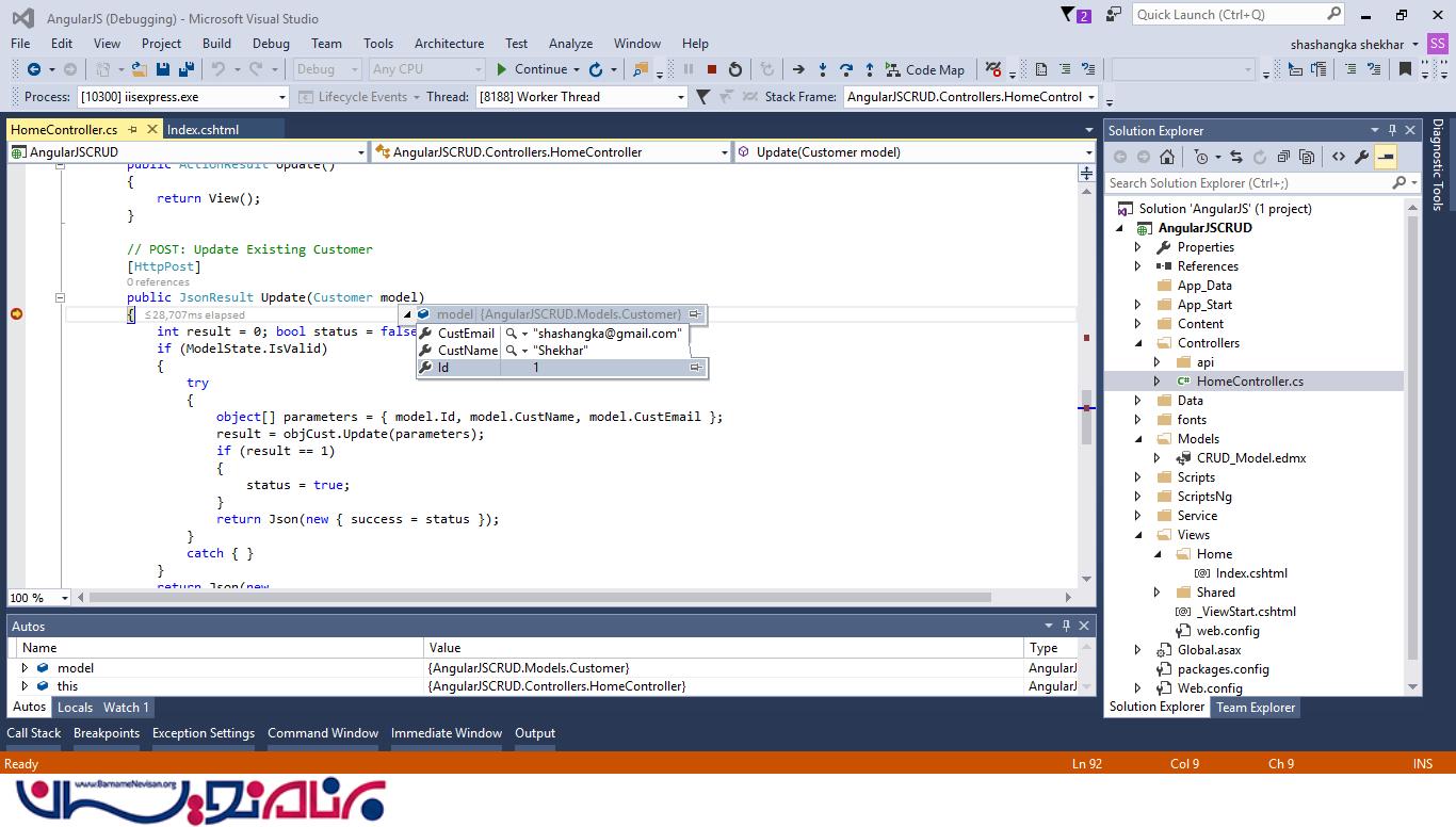 پیاده سازی عملیات CRUD با استفاده از AngularJS در MVC