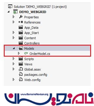 بعد از ایجاد پروژه یک مدل ساده برای آن در نظر می گیریم .نام این مدل را OrderModel در نظر می گیریم .پس یک کلاس به نام orderModel در نظر می گیریم .