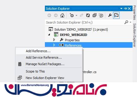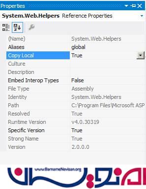 برای رفع این خطا کافی است که reference با نام System.Web.Helpers.dll, v2.0.0.0 را به پروژه خود اضافه کنید .برای این کار کافی است که بر روی پوشه reference کلیک راست کنید و گزینه add reference را بزنید .