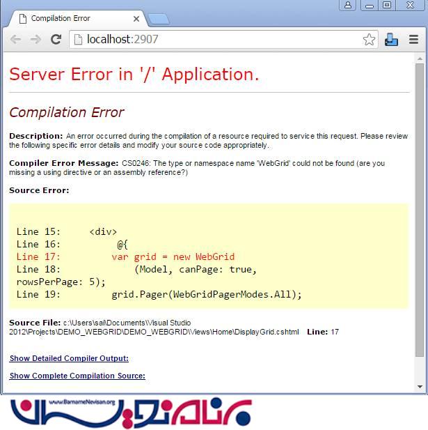 Compiler Error Message: CS0246: The type or namespace name 'WebGrid' could not be found. (Are you missing a using directive or an assembly reference?)