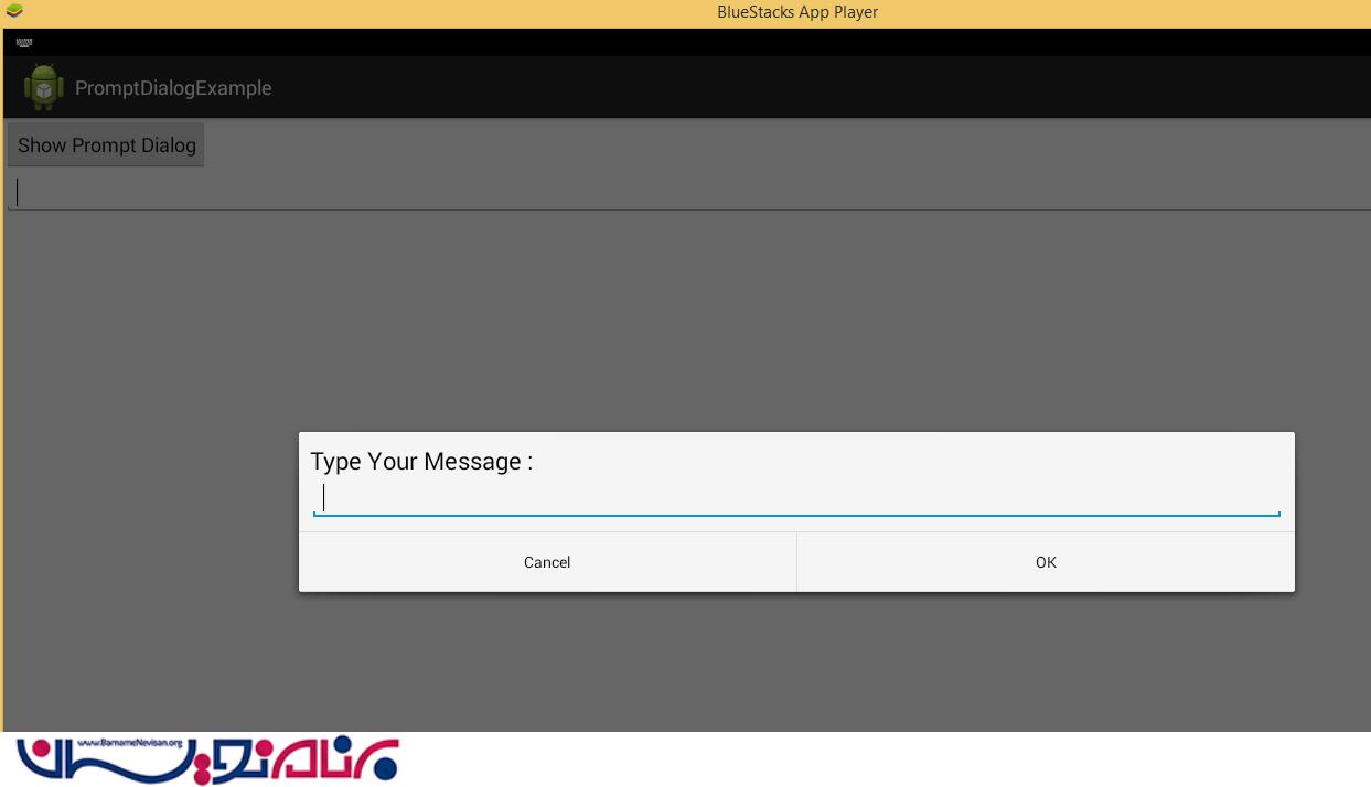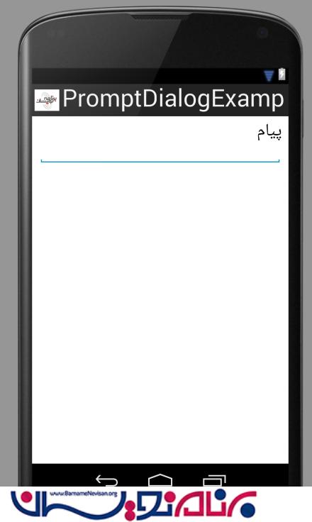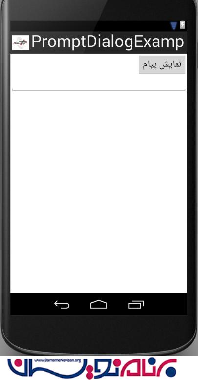حالا باید برای نمایش dialog باید از یک فایل xml استفاده نمایید که یک از textview و یک edittext استفاده می شود، که زمانی که کاربر متنی را وارد می نماید متن وارد شده بعداز بسته شدن dialog داخل یک edittext قرار می گیرد.