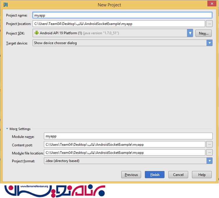 در مرحله ی بعدی نام پروژه و آدرس پروژه و sdk استفاده قرار گرفته است.