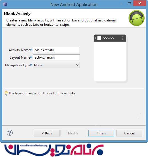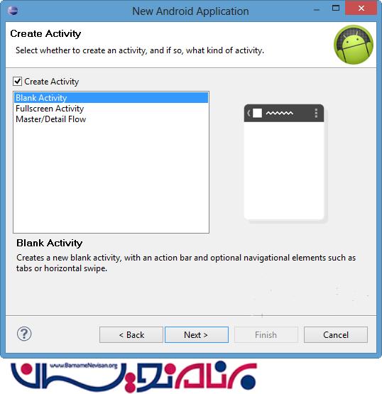 در مرحله ی بعدی یک activity خالی ایجاد نمایید:
