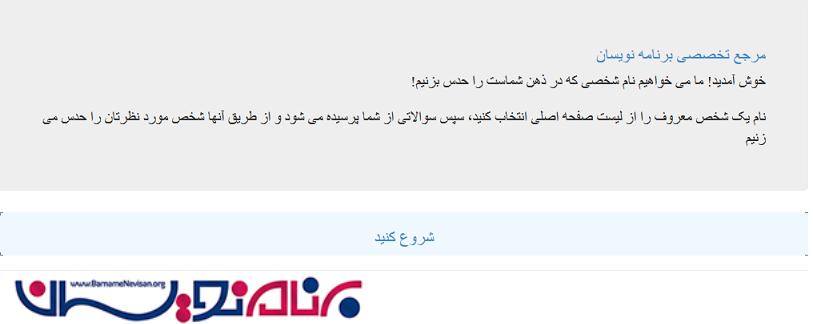 شما می توانید فرد مورد نظر خود را از لیست نشان داده شده انتخاب کنید. شخص مورد نظر می تواند خواننده بازیگر یا ورزشکار باشد. سپس از شما سوالاتی پرسیده خواهد شد که پاسخ های بله یا خیر را به آنها می دهید. در نهایت سیستم نام شخص مورد نظر را به شما نشان می دهد.