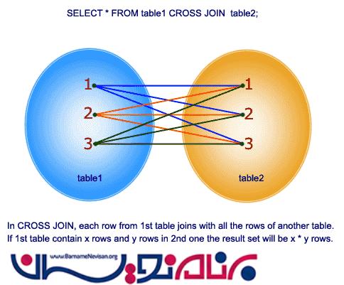 Cross Join -3 در این دستور یک سطر جدول اول در کنار تمام سطرهای جدول دوم قرار می گیرد.و این کار برای تمام سطر ها تکرار می شود .