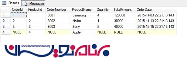 Outer Join -2 : این نوع Join خود به سه دسته left,right,full تقسیم می شود .در خروجی این نوع join سطر هایی از جدول اصلی که سطر متناظر در جدول دیگر ندارند هم در خروجی می آیند .
