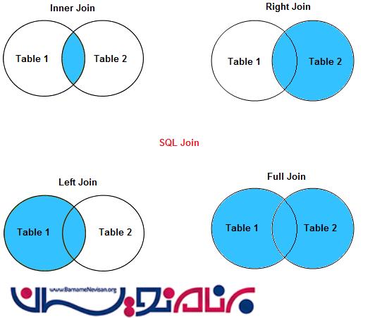 انواع مختلفی از دستور join وجود دارد که در زیر شکل آنها نشان داده شده است