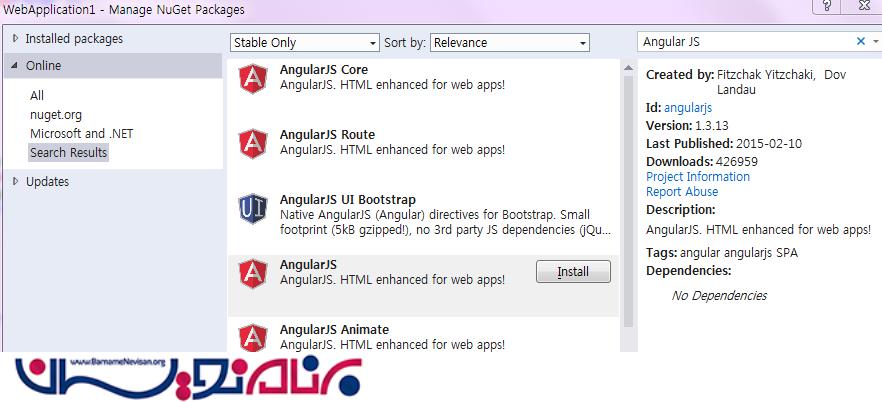 2. چگونه می توان AngularJS Pakage را در اپلیکیشن های MVC نصب کرد.