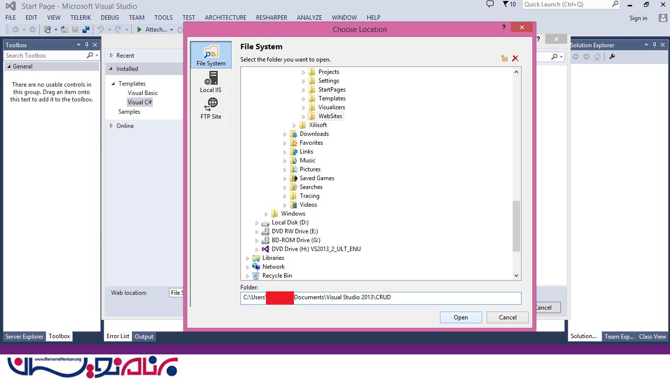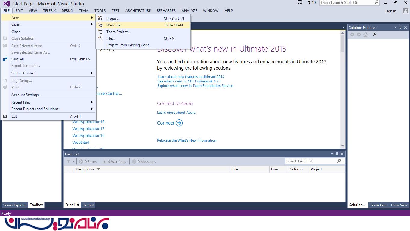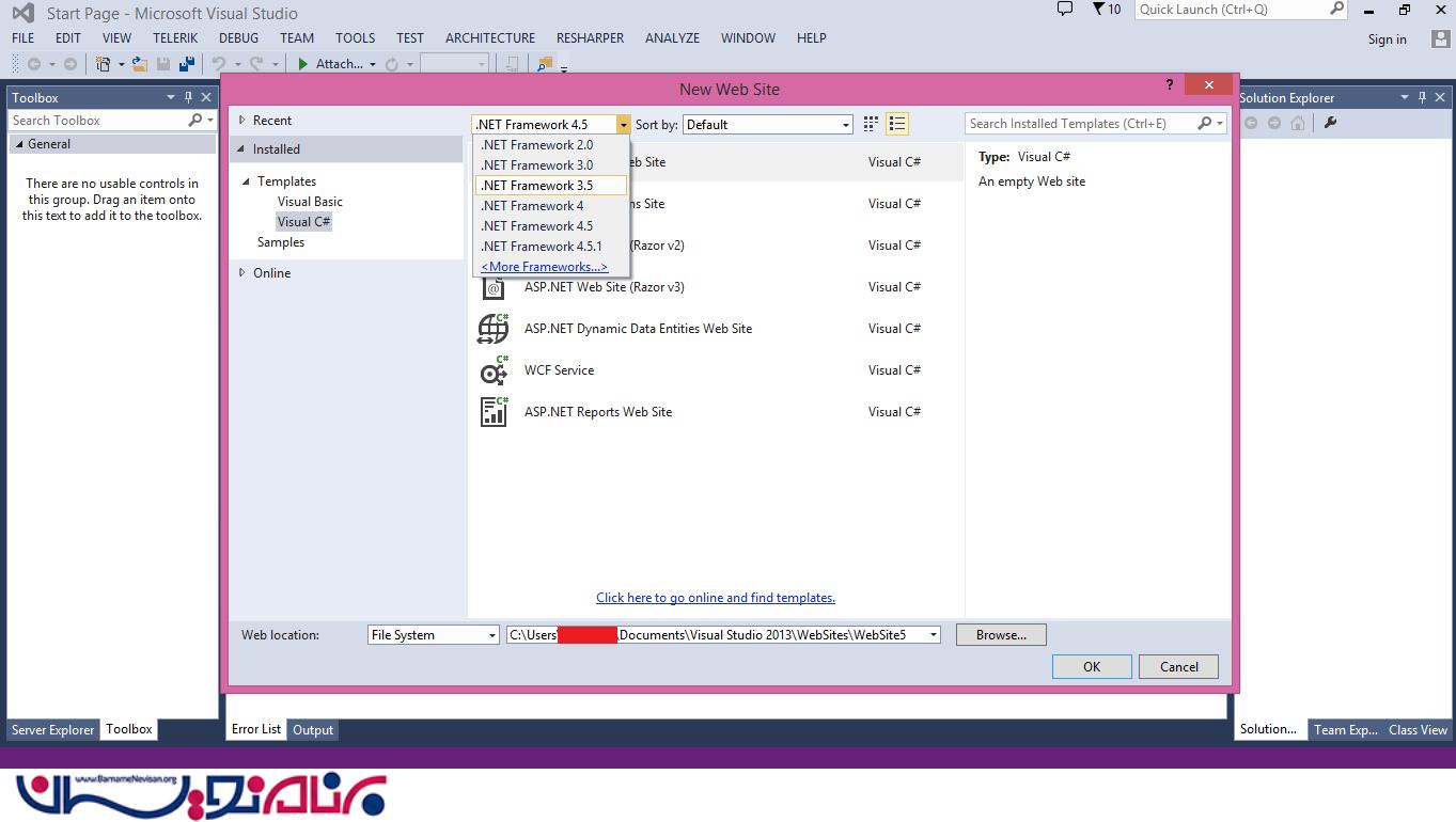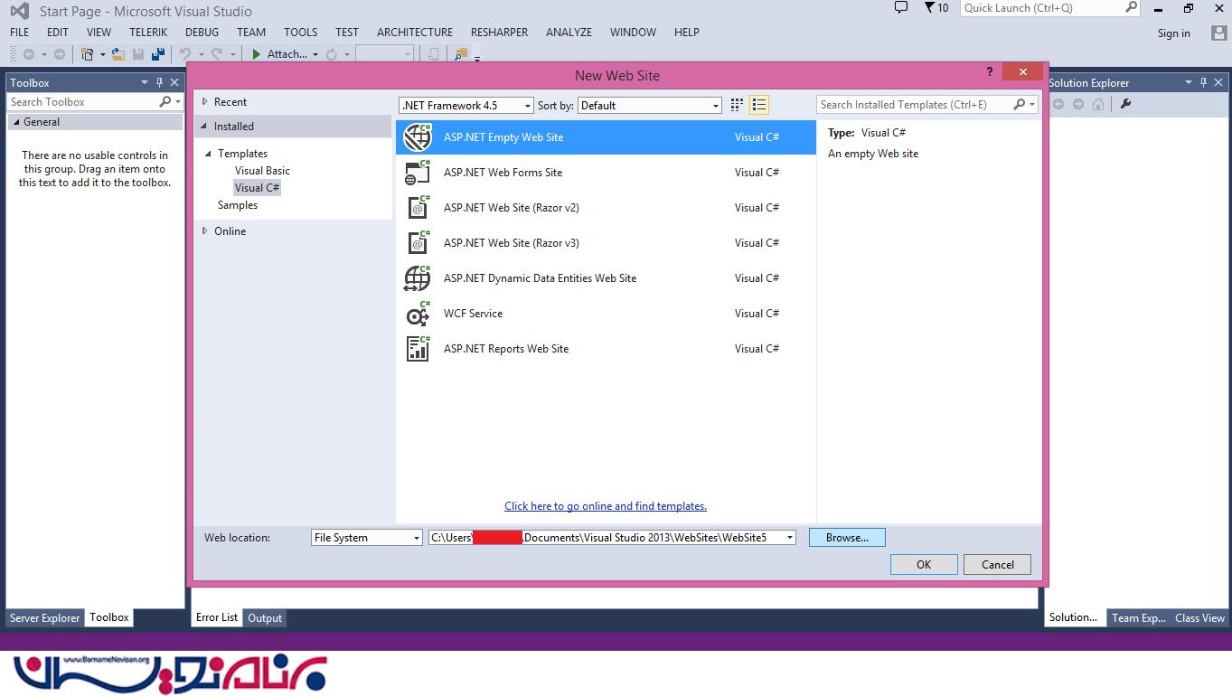یک New Web Application ایجاد کنید. ( Visual Studio را باز کنید و File -> New -> Web Site را انتخاب کنید. )