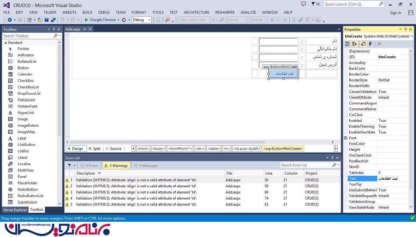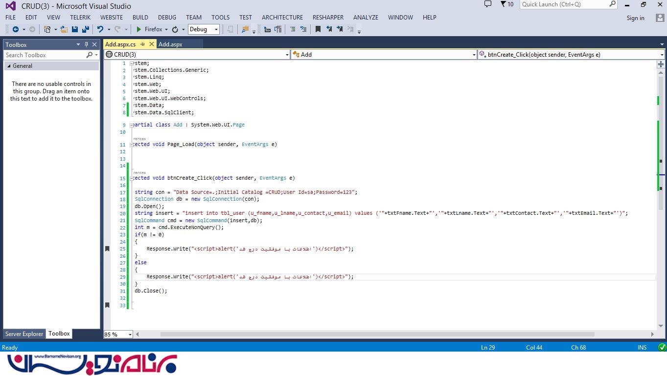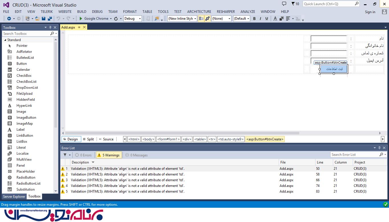 انجام عملیات CRUD در ASP.Net