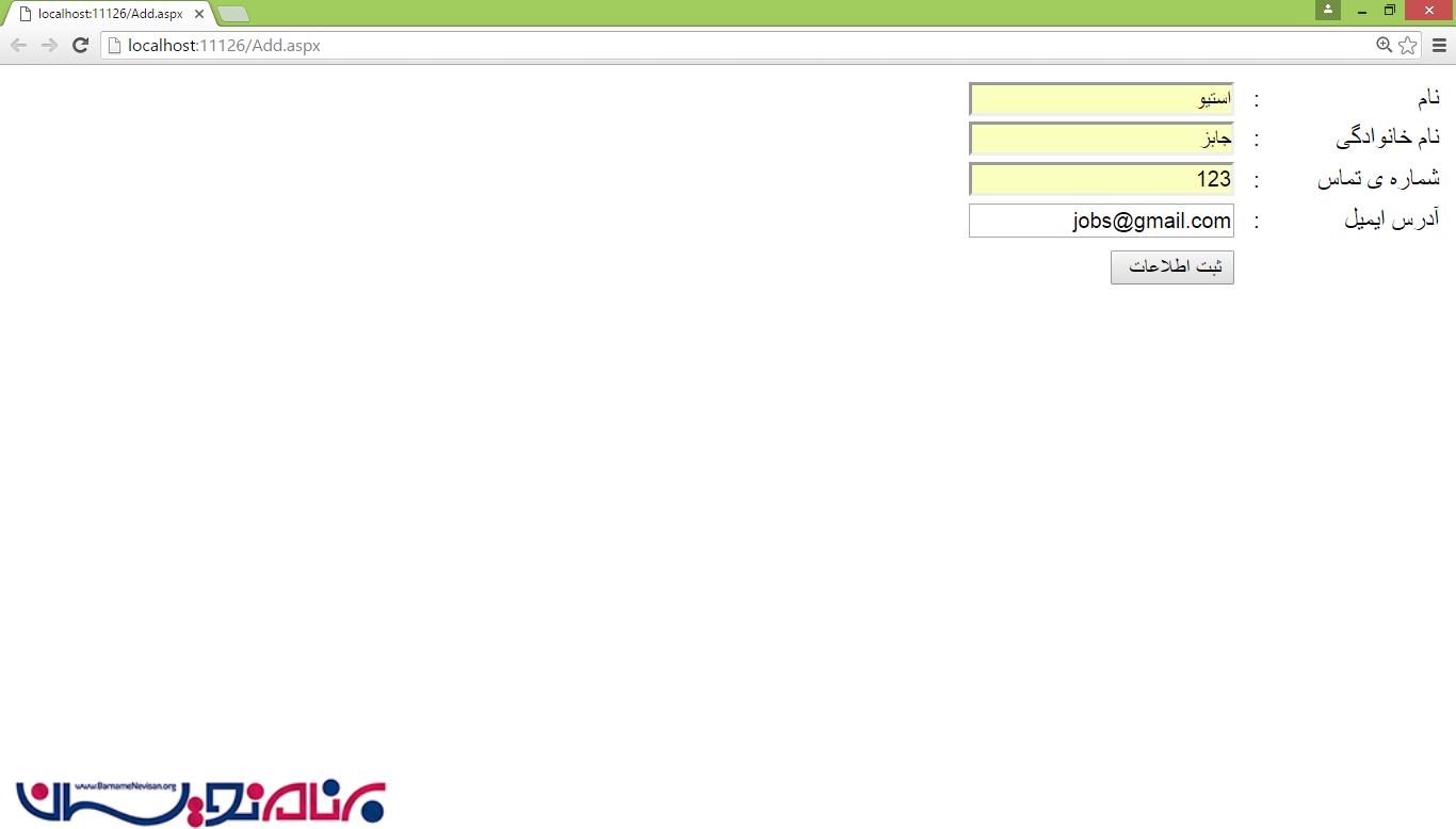 3-جزئیات کاربر را وارد کنید و بر روی دکمه ی "ثبت اطلاعات " کلیک کنید.