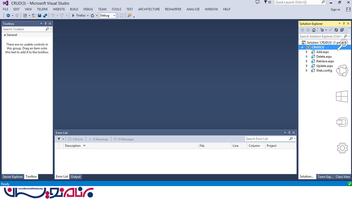 دوشنبه 17 اسفند 1394در این مقاله می خواهیم نحوه ی انجام عملیات CRUD در ASP.Net را بررسی کنیم. این کار به صورت مرحله به مرحله و بسیار ساده خواهد بود.در این مقاله از برنامه های Visual Studio و SOL Server استفاده می کنیم.