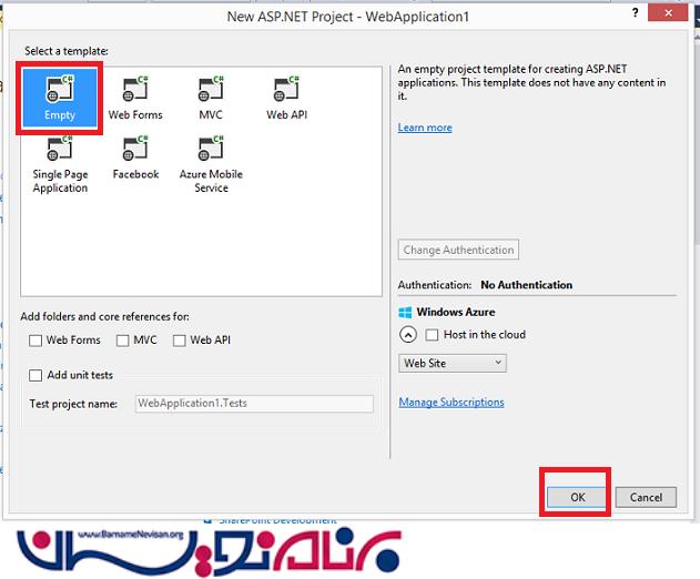 در ابتدا یک پروژه خالی به صورت زیر ایجاد می کنیم: