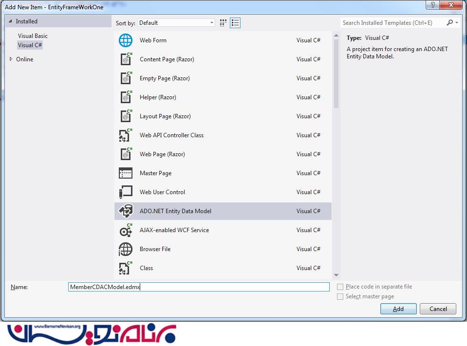 حالا به صورت زیر Entity Data Model را اضافه می کنیم: