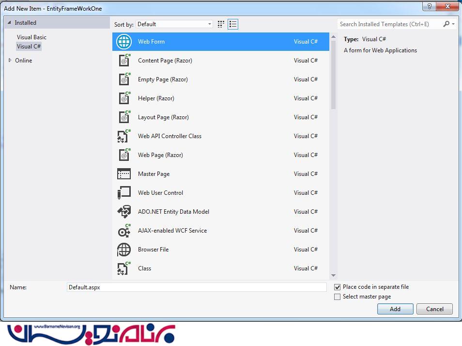 در اینجا یک صفحه Web Form اضافه می کنیم: