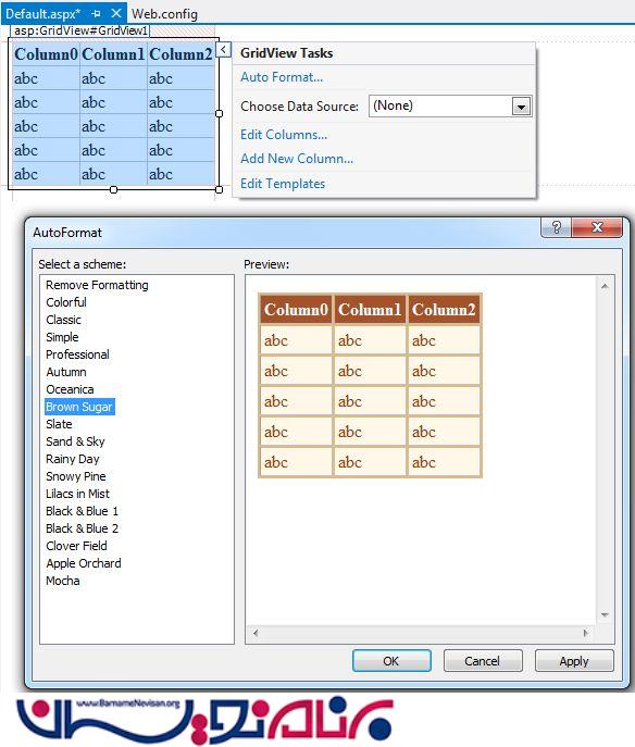 GridView را انتخاب کرده و بر روی SMART TAG کلیک کنید: