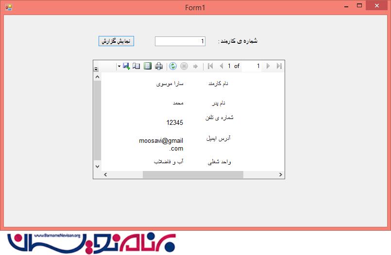 مرحله 8 : در این مرحله می توانید پروژه را اجرا کنید و شماره ی هر کارمند را بدهید و گزارش تولید شده را دریافت کنید.