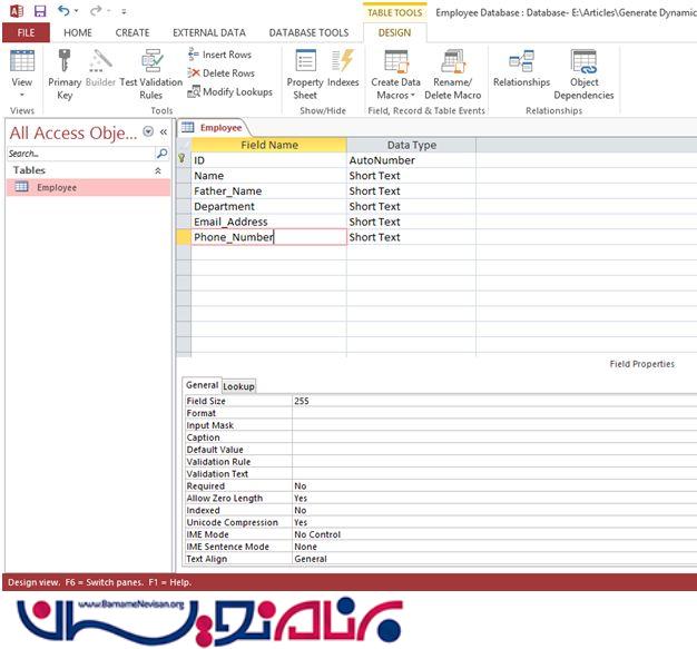 مرحله 7 : در قسمت Event مربوط به button ، کدهای زیر را اضافه کنید. همیشه نام textbox ای که در آن "شماره ی کارمند" وارد می شود را به خاطر بسپارید تا در مواقع بعدی ، در صورت لزوم، به راحتی بتوانید آن را تغییر بدهید.