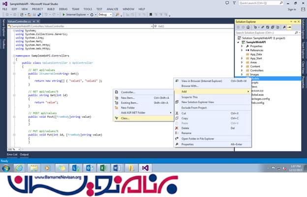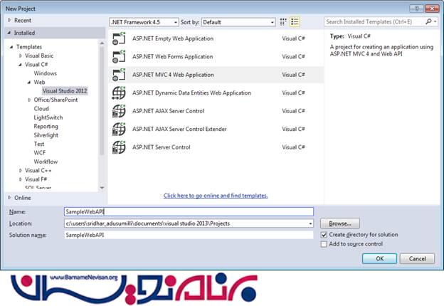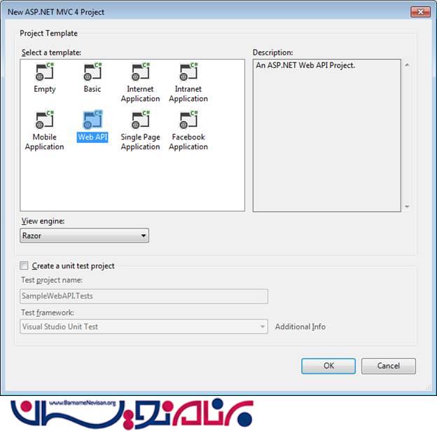 بیایید با هم یک WebAPI ساده ایجاد کنیم و از آن در یک برنامه ی دیگر استفاده کنیم. یک پروژه ی جدید ایجاد کنید، و مراحل زیر را به ترتیب انجام بدهید:
