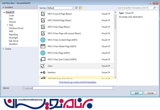 در پوشه ی Models ، یک Class ایجاد کنید و نام آن را Customer بگذارید.