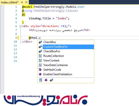 برای ایجاد helper سفارشی از نوع strongly ما extension method را برای کلاس ‘HtmlHelper<TModel>’ می گذاریم.