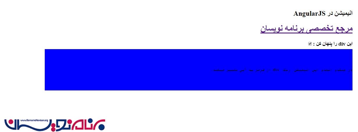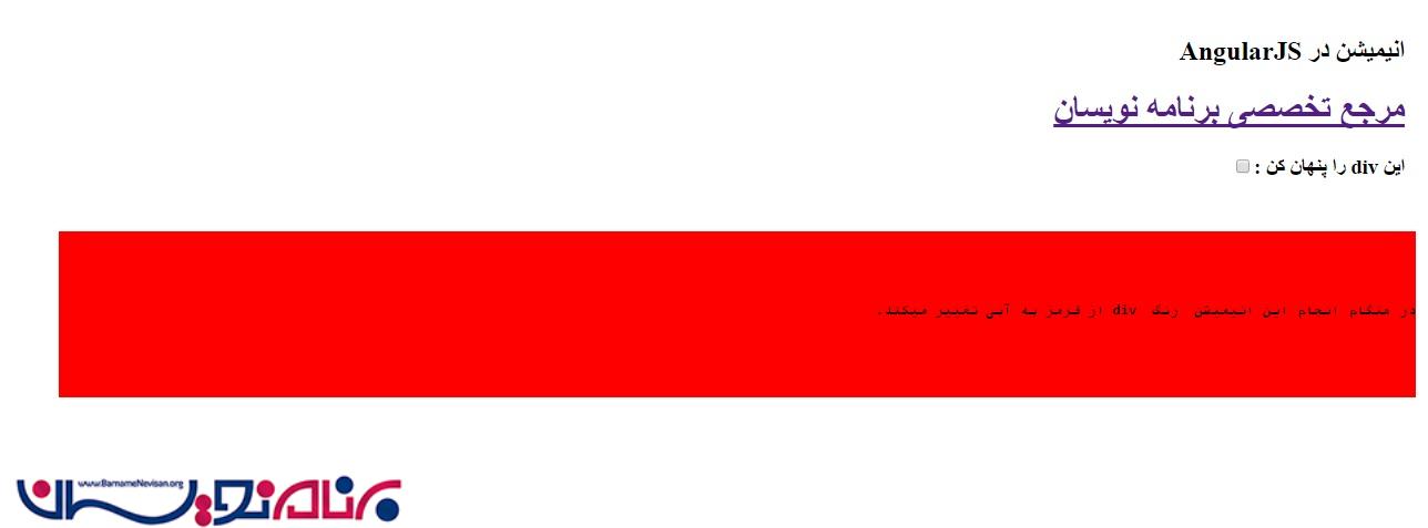 در اینجا مثال ساده ای از ng-hide را مشاهده کردید که انیمیشنی را فعال میکند.