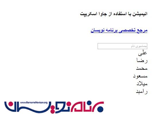 اگر حرفی را در textbox موجود جستجو کنیم نتیجه به صورت زیر خواهد بود.