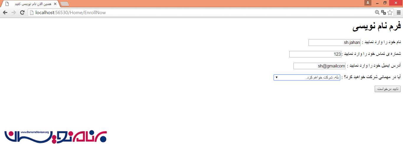 مرحله 7 : در “EnrollNow” view تکه کد زیر را اضافه کنید: