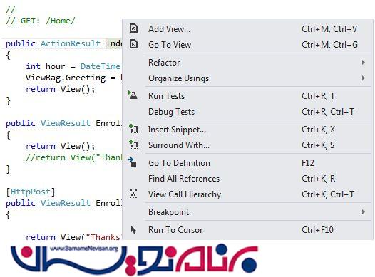 برای این که بتوانیم عملیات گفته شده در کد بالا را انجام بدهیم، نیاز داریم تکه کد زیر را در “Home Controller” اضافه کنیم :