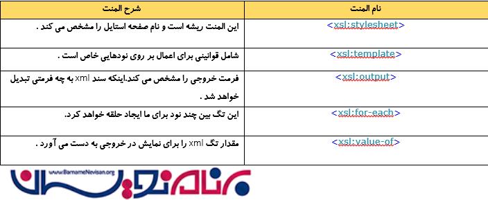 نام المنت هایی که در اسناد از نوع XSLT به کار رفته و کاربرد آنها را در زیر می بینید