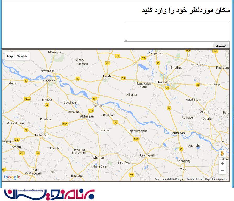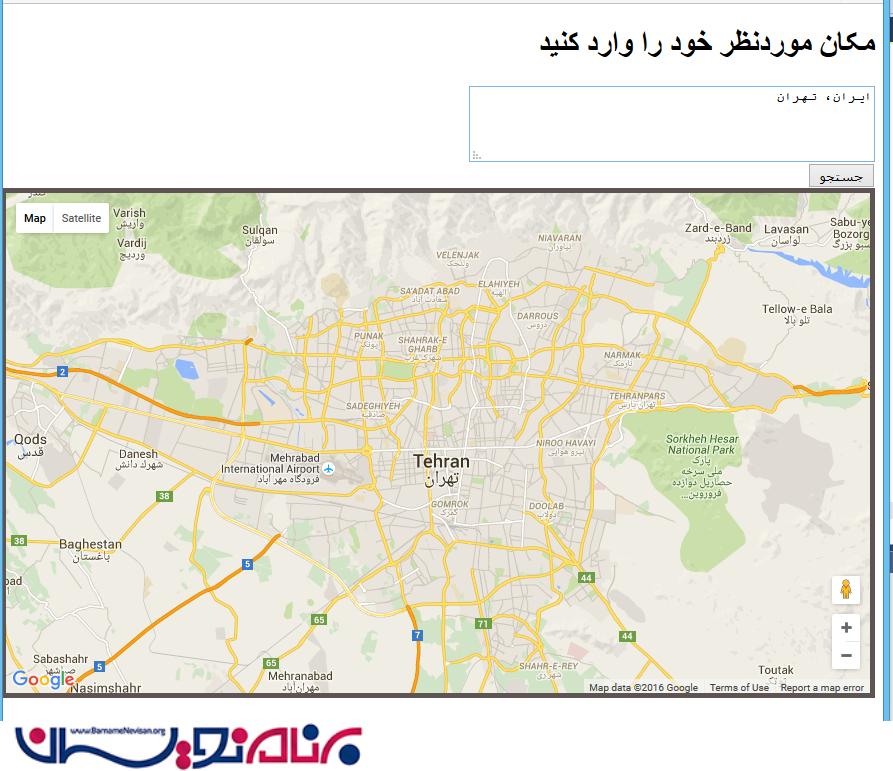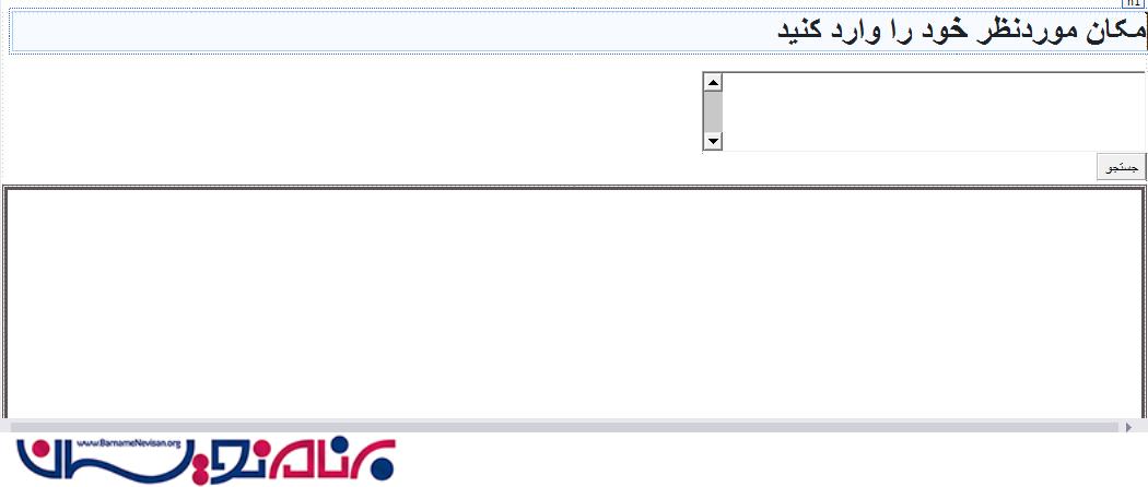 حال نام هر مکانی را که میخواهید موقیعتش را بدانید در textBox تایپ کنید و روی دکمه جستجو کلیک کنید.