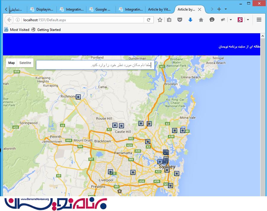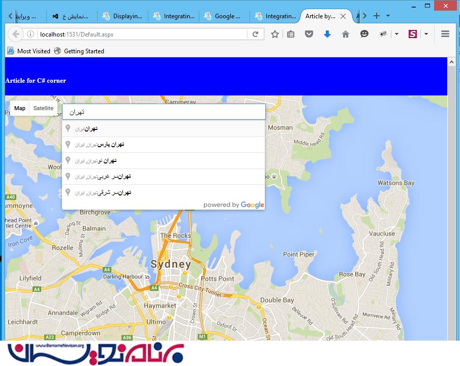 سه شنبه 11 خرداد 1395تغییر نیازهای بازار کار و رشد سریع تکنولوژی باعث شده است که کاربران برنامه های تحت وب ، خواستار آپشن ها و قابلیت های بیشتری در برنامه های خود باشند. بنابراین در این مقاله میخواهیم نحوه ی یکپارچه سازی جستجو در google Map به صورت auto-complete را آموزش دهیم.