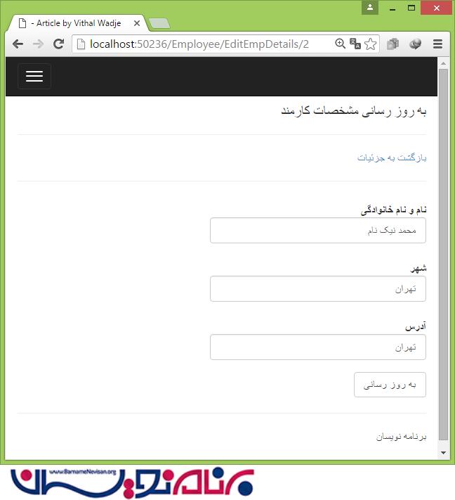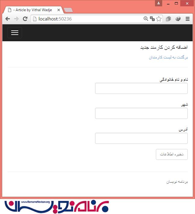 حالا برنامه را اجرا کنید . مطابق شکل زیر AddEmployee view برای شما ظاهر خواهد شد :