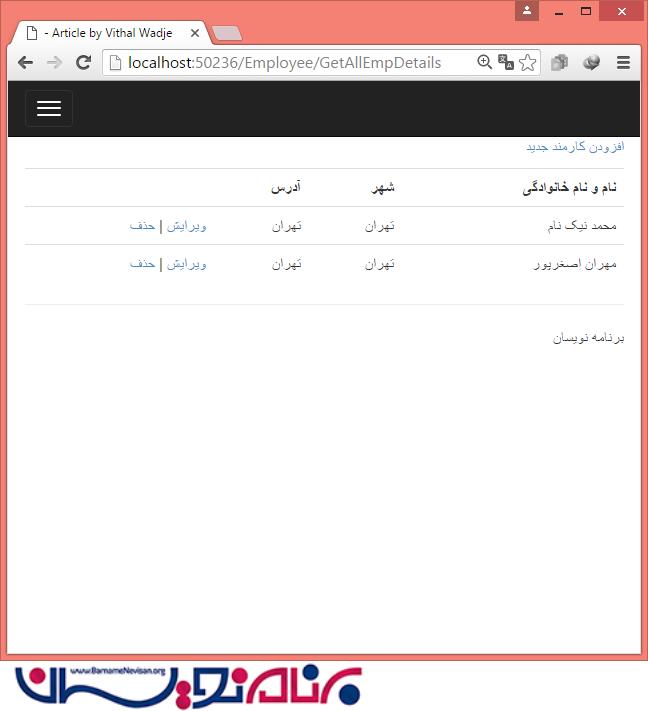 به این ترتیب مرحله به مرحله ، یک برنامه ی ASP.Net MVC ساختیم که عملیات CRUD را برای ما انجام می دهد.