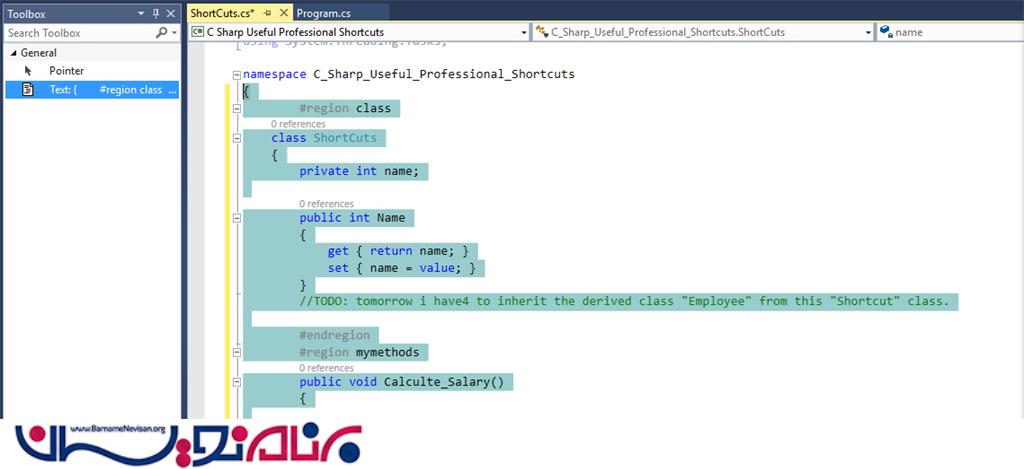 کلیدهای میانبر و ویژگی های کاربردی و تخصصی در ویژوال استودیو