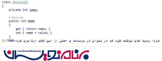 با استفاده از این قابلیت، میتوانید هنگامیکه در حال تایپ کردن هستید سطح دسترسی به کدها و متغیرها را تعیین کنید. سطح دسترسی سه نوع public، privateو protected میباشد. با استفاده از propfull یک تعیین کننده ی سطح دسترسی (access specifier) ایجاد میشود و به صورت خودکار getter و setter تعریف میکند.