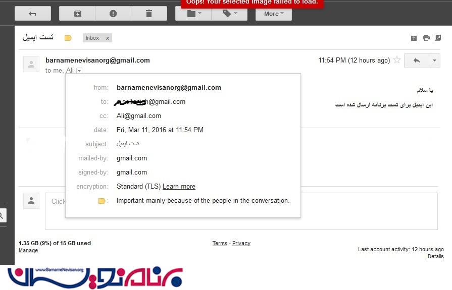 پیام دریافت شده در ایمیل به صورت زیر است: