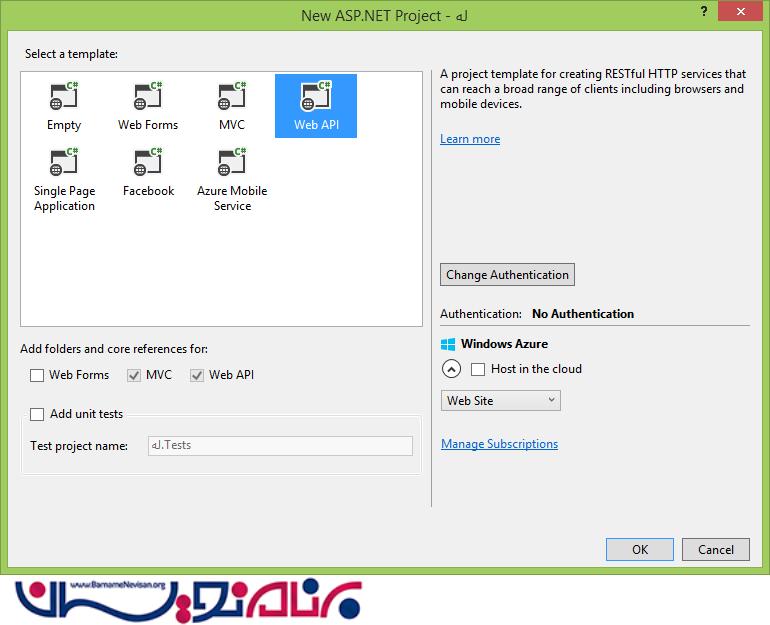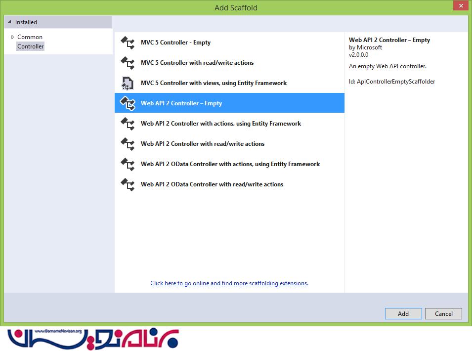 ایجاد یک Controller : یک Controller خالی مطابق شکل زیر ایجاد کنید :