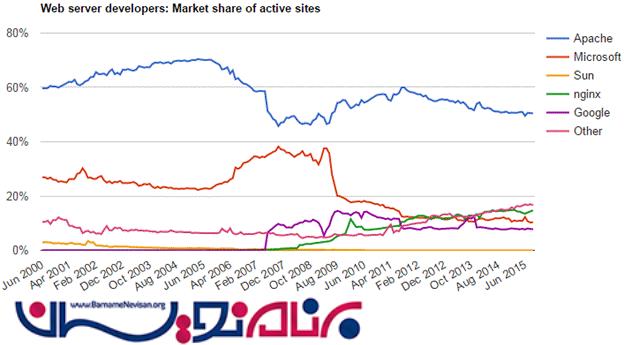 چارت زیر نشان می دهد که که مححبوب ترین زبان برای برنامه نویسی سمت server برای server های مختلف کدام زبان است.