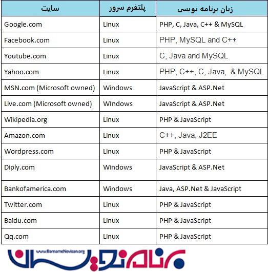 مقایسه بین زبان های برنامه نویسی استفاده شده در سایت های متداول