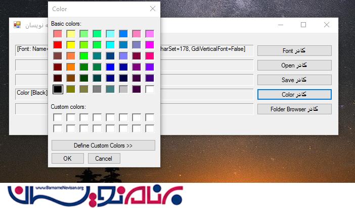 برای تغییر رنگ ، فونت ها و lable ها و .. از ColorDialog استفاده میکنیم.