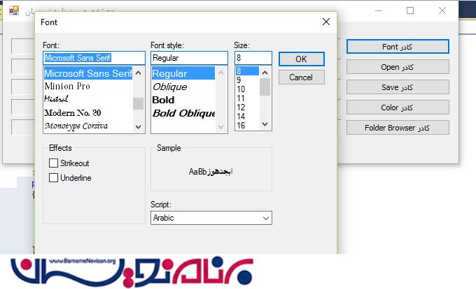 برای استفاده از تغیر فونت در لحظه اجرا کافی است از FontDialog ها استفاده کنید