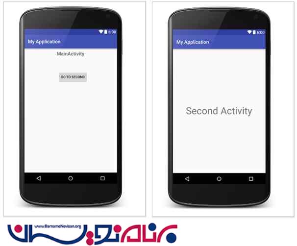 در زیر یک مثال می خواهیم قرار دهیم که با زدن یک دکمه از یک activity به activity دوم برویم