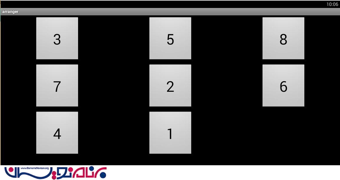 ابتدا یک آرایه تعریف نمایید و ابزارهایی که در صفحه قرار دادید را تعریف کنید، دکمه هایی که بر روی صفحه قرار دادید برای آن ها اندازه و سایز متن و فاصله ی دکمه ها از هم دیگر را مشخص کنید، گرید ویوی تعریف شده به وسیله ی آرایه ای که تعریف کرده اید باید پر نمایید برای مرتب سازی از دستور if استفاده شده است اگر درست مرتب نمایید پیغام را با Toast نمایش خواهد داد در غیر این صورت پیغام عدم موفقیت نمایش داده خواهد شد.